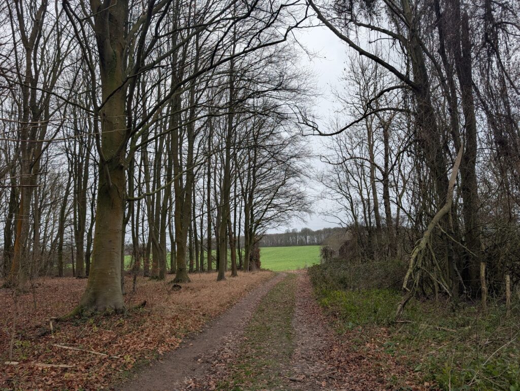 From here, the North Downs Way continues in more or less a straight line for some miles. Truth be told, it’s some pretty uninteresting walking with the occasional field on your right side, but not much in the way of great views. Eventually, the path connects with Hart Hill Road, where you’ll take a right turn before quickly turning left and back onto Pilgrim’s Way. Be especially careful for the brief section along Hart Hill Road, as it’s a bit of a blind bend and cars can come round very quickly.