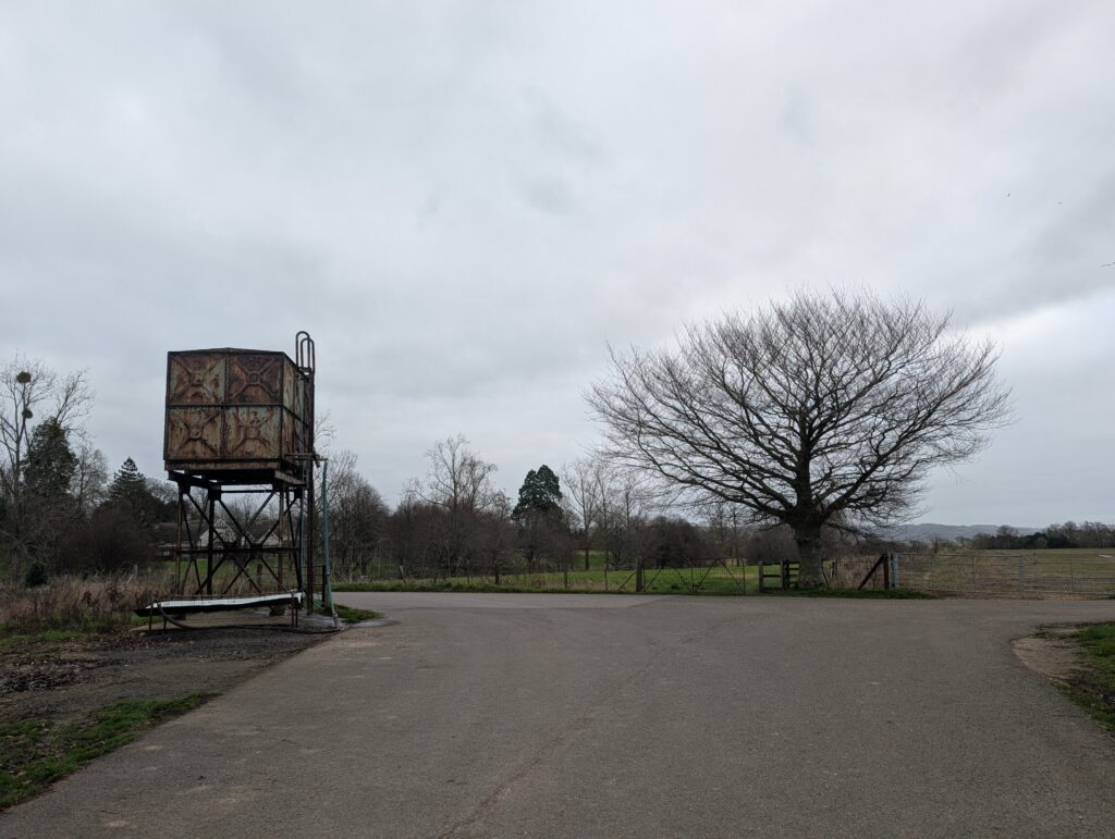 Once you reach the road, keep heading straight ahead to stay on the North Downs Way. You’ll also pass by St Mary’s Church, which is on the right-hand side immediately after leaving the fields. You’ll keep heading straight ahead with some lovely views of Eastwell Lake on the right until you reach a T-Junction next to a small water tower. From here, keep going straight on.