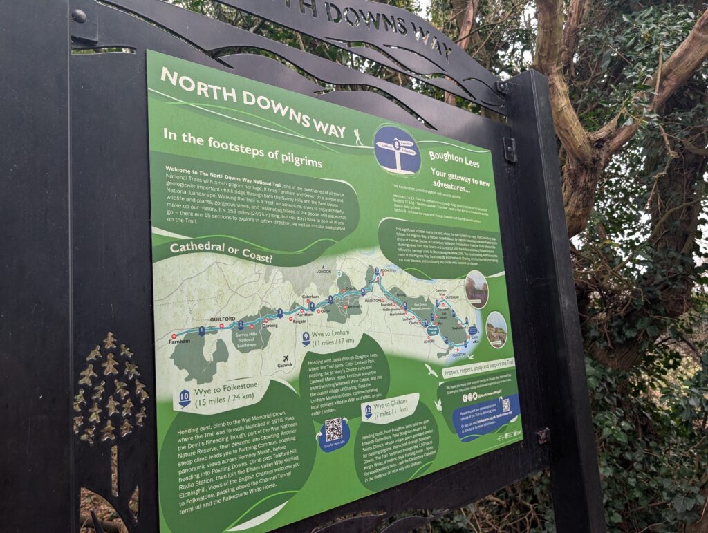 This marks quite a significant point in the North Downs Way as its here where the trail splits in two. You can either follow the mainline route towards Folkestone (which is quicker) or deviate along the Pilgrims Way, which curves round towards Canterbury before then heading onwards into Dover. Both routes end in the same place, although the route through Canterbury is a bit longer.